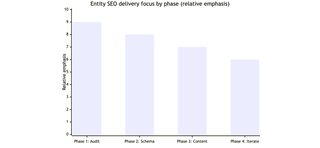 Entity SEO works best when you phase it. This keeps teams focused on what drives growth and reduces the risk of shipping shallow, checkbox schema.